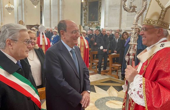 Il presidente della Regione Siciliana, Renato Schifani, questa mattina nella cattedrale di Catania, ha assistito al solenne pontificale officiato dall’arcivescovo metropolita Luigi Renna per le celebrazioni della Festa di Sant’Agata. Presenti anche il presidente dell’Assemblea regionale siciliana Gaetano Galvagno, gli assessori regionali all’Economia Marco Falcone, all’Agricoltura, sviluppo rurale e pesca mediterranea Luca Sammartino, al territorio e ambiente Elena Pagana e il capo della Protezione civile regionale Salvo Cocina.