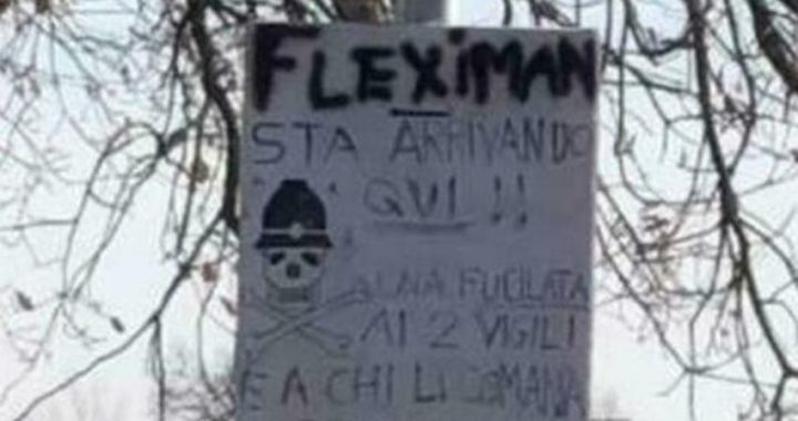Ormai Fleximan sta diventando un fenomeno di massa pericoloso non solo per gli autovelox, ma anche per le persone considerando che ora è passato anche alle minacce. Recentemente a Santa Maria Nuova, nelle Marche, è comparso un cartello a firma Fleximan dove vengono addirittura minacciati i vigili che “osano” fare multe.