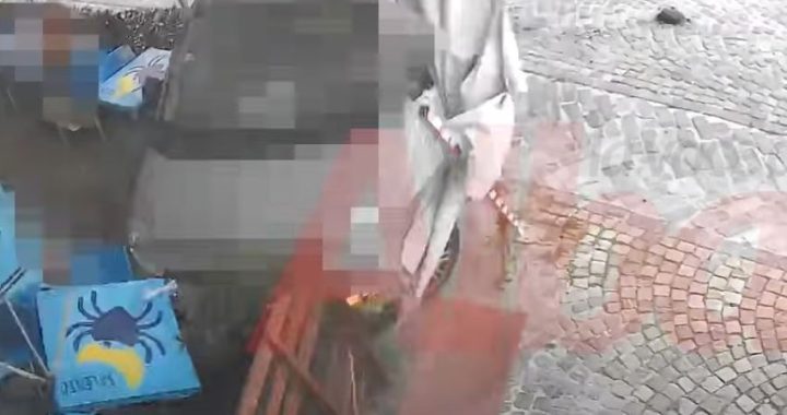 Barbetta afferra poi un posacenere per colpire l’auto, poi ritorna poco dopo con un bastone per le tende per allontanarlo. Proprio in quel momento il 45enne fa retromarcia e riparte in avanti all’improvvisto travolgendo i tavolini del bar, facendo cadere a terra anche Barbetta.