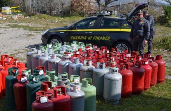In particolare, le indagini condotte dalle Fiamme Gialle consentivano di scoprire una vasta area nella quale venivano rinvenute circa 100 bombole, contenenti in totale l’ingente quantità di G.P.L., non solo detenute ma anche imbottigliate e commercializzate in assenza di qualsiasi autorizzazione.
