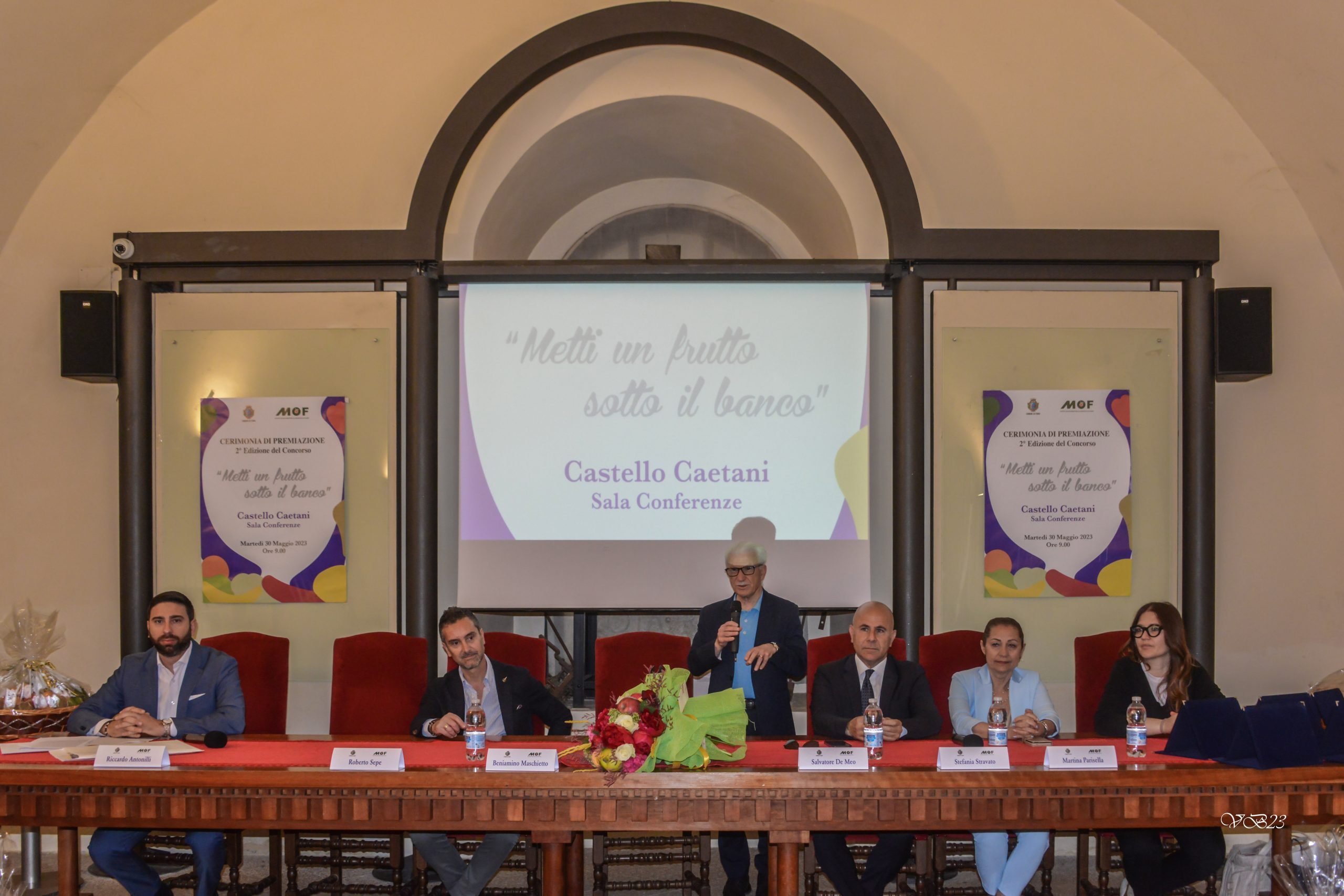 Si è tenuta ieri mattina (martedì 30 maggio), presso la sala conferenze del Castello baronale di Fondi, la cerimonia di premiazione della seconda edizione di “Metti un frutto sotto il banco”, il progetto e concorso promosso dal Comune di Fondi e dal Mof allo scopo di portare sui banchi di scuola le corrette abitudini alimentari.