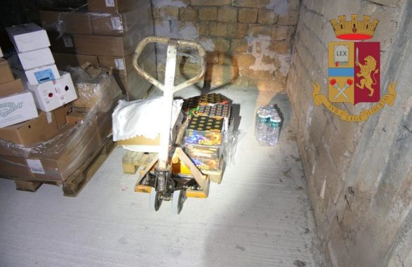 Poiché tutta la merce appariva di chiara provenienza illecita, essa veniva sottoposta a sequestro e il detentore veniva denunciato in stato di libertà per i reati di ricettazione e per il possesso di artifizi pirotecnici di vietata detenzione senza titolo autorizzativo (con specifico riferimento a quelli di categoria F3). Dei fatti veniva informato il P.M. di turno il quale autorizzava la rimozione e la distruzione degli artifizi pirotecnici e l’affidamento alla Caritas Diocesana delle derrate alimentari, dopo averne fatto accertare la qualità e la genuinità da parte di personale dell’ASP che poi avrebbe disposto più approfonditi accertamenti da parte dei medici competenti.