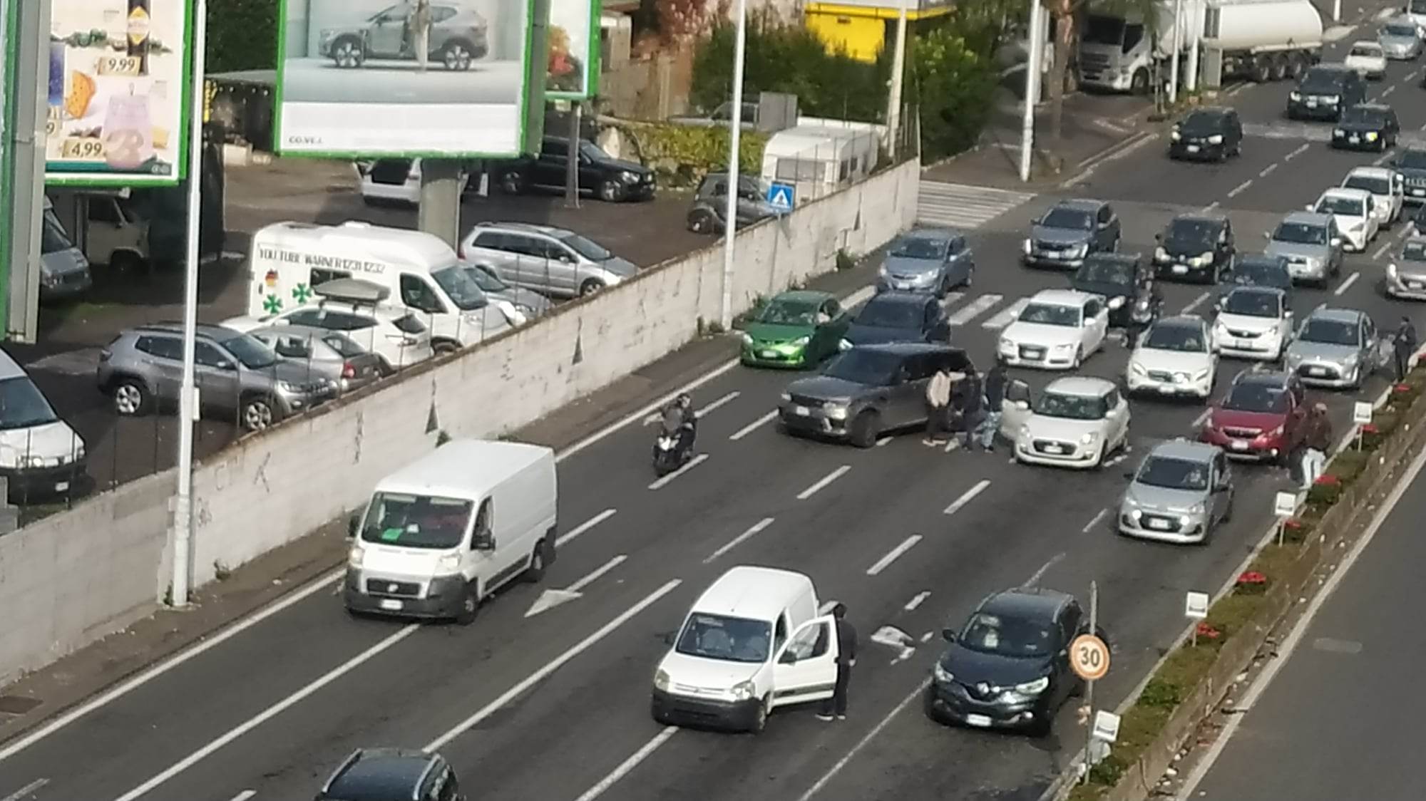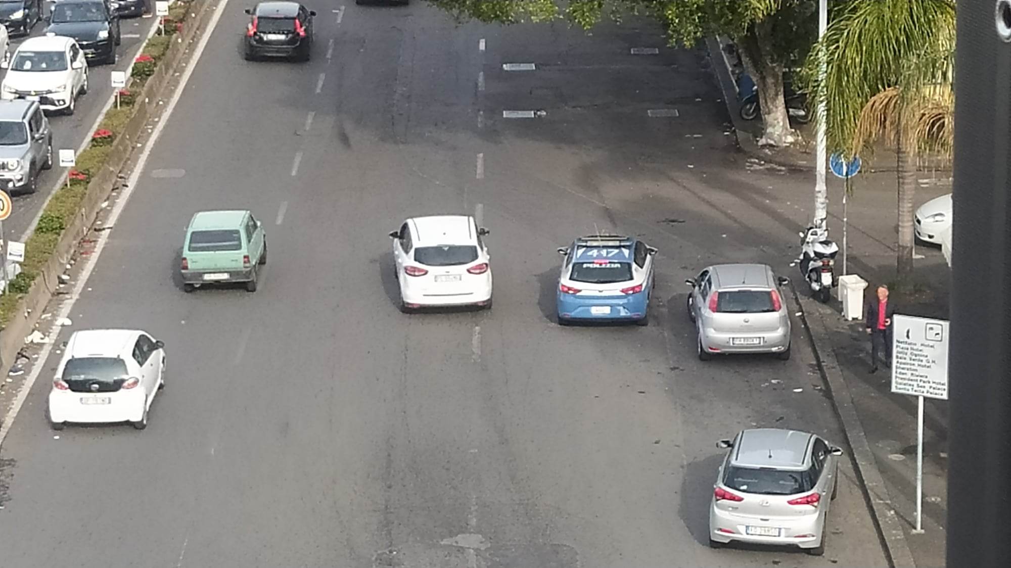 Sulla carreggiata in direzione sud dell’ultimo tratto di via Vincenzo Giuffrida, quello con lo spartitraffico, alcuni extracomunitari che ogni giorno girano lì hanno bloccato un automobilista che preso da nervi ha deciso di sferrare un calcio a uno di loro.