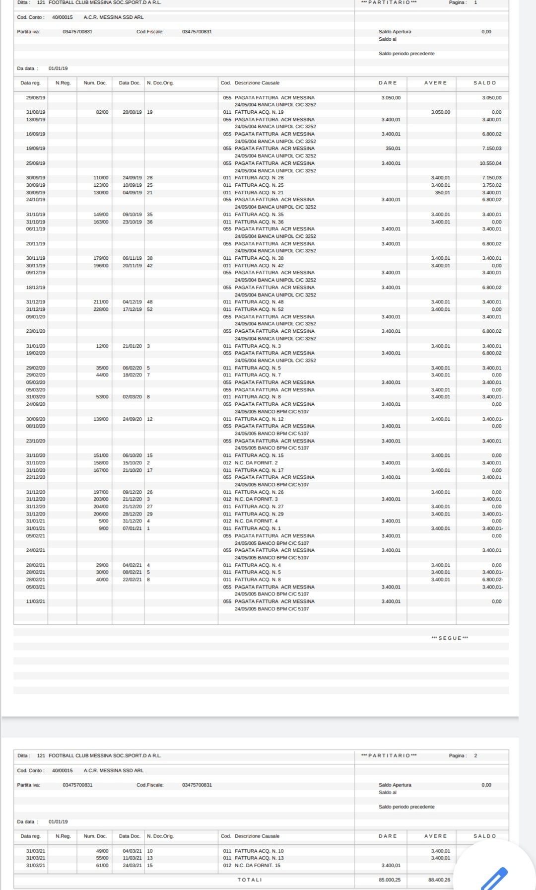 In allegato, prova documentale dei pagamenti effettuati da fc messina ad acr e verbale molto discutibile di mancata valutazione con parere necessariamente non favorevole. Il Consigliere Comunale Salvatore Sorbello.