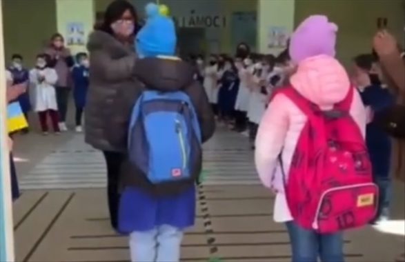Dmytri e Viktoria, di 10 e 8 anni, sono due fratellini ucraini fuggiti dalla guerra che hanno trovato rifugio a Napoli. Al primo giorno di scuola, alla primaria Don Milani di Pomigliano d’Arco, sono stati accolti da un caloroso benvenuto dagli altri bambini con applausi, striscioni e bandierine colorate.