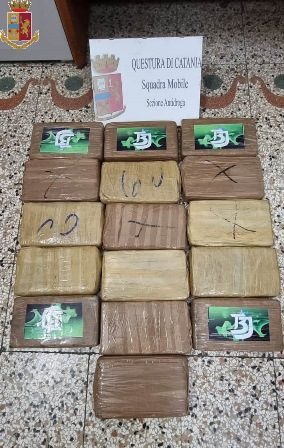 Ad esito di perquisizione, a bordo del suddetto veicolo si rinvenivano, occultati all’interno di un carico di cassette di frutta, 16 involucri cd. “panetti” contenenti sostanza stupefacente del tipo cocaina per un peso complessivo lordo di circa 18 kg.