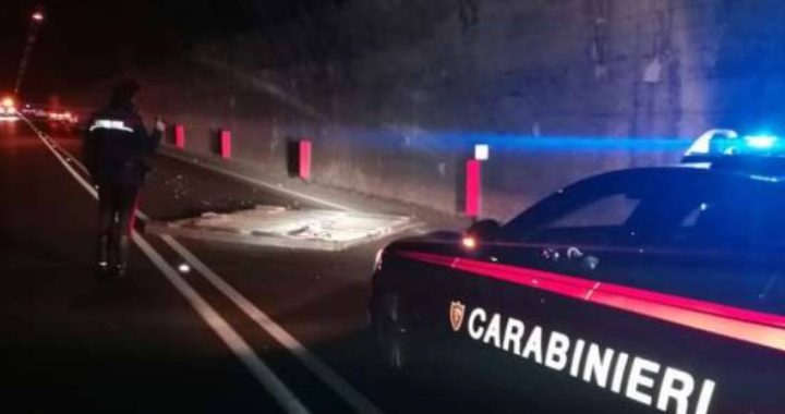 I militari constatavano che un Camion-frigo, in marcia lungo la trafficata arteria, perdeva lo sportellone posteriore e parte del carico che si riversava sulla sede stradale. Il tutto senza che il guidatore del mezzo si accorgesse di nulla.