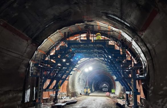 Sono in corso, in particolare, i lavori di ripristino della calotta (la parte più alta della volta di rivestimento definitivo di una galleria) mediante l’impermeabilizzazione tra il vecchio e il nuovo getto, la realizzazione della gabbia di armatura e il getto del calcestruzzo.