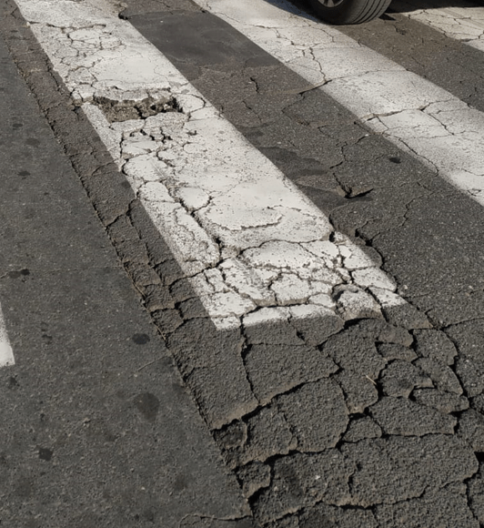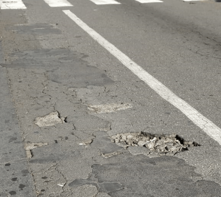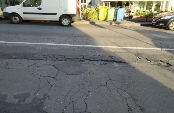 Le segnalazioni giunte al Comitato Vulcania sono tante e il sopralluogo di verifica ha permesso di delineare la situazione critica in via Torino. Le buche già presenti, che si sono vistosamente allargate con le precipitazioni degli ultimi giorni, si sono trasformate in veri e propri crateri di svariati centimetri di profondità e diametro.