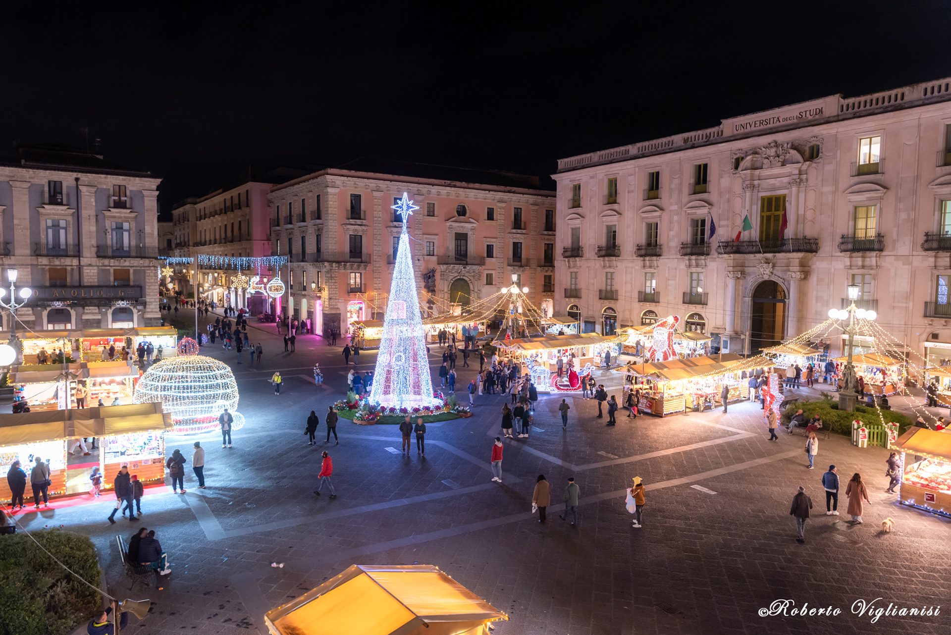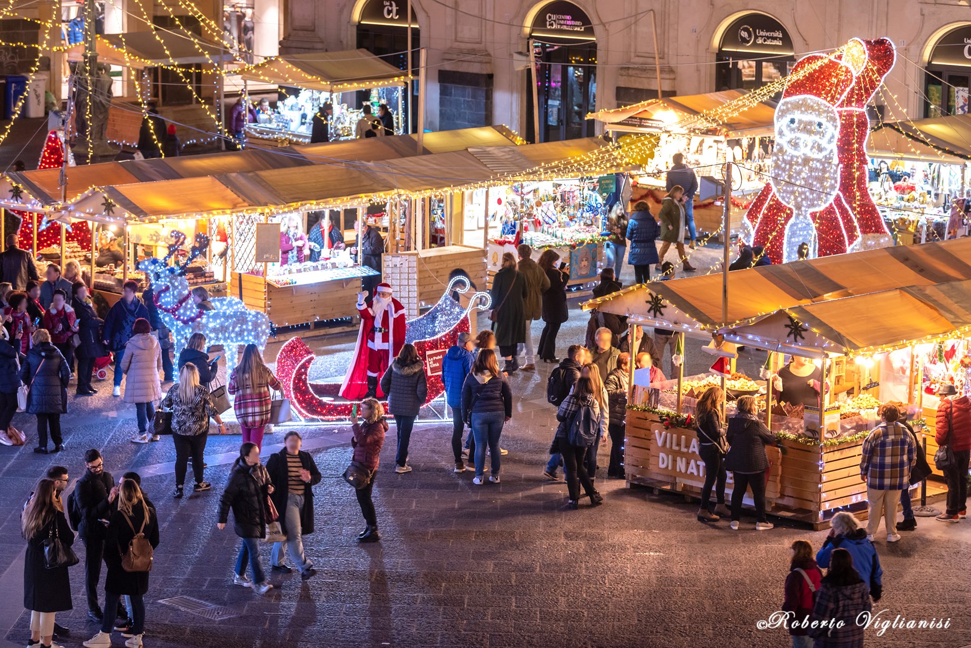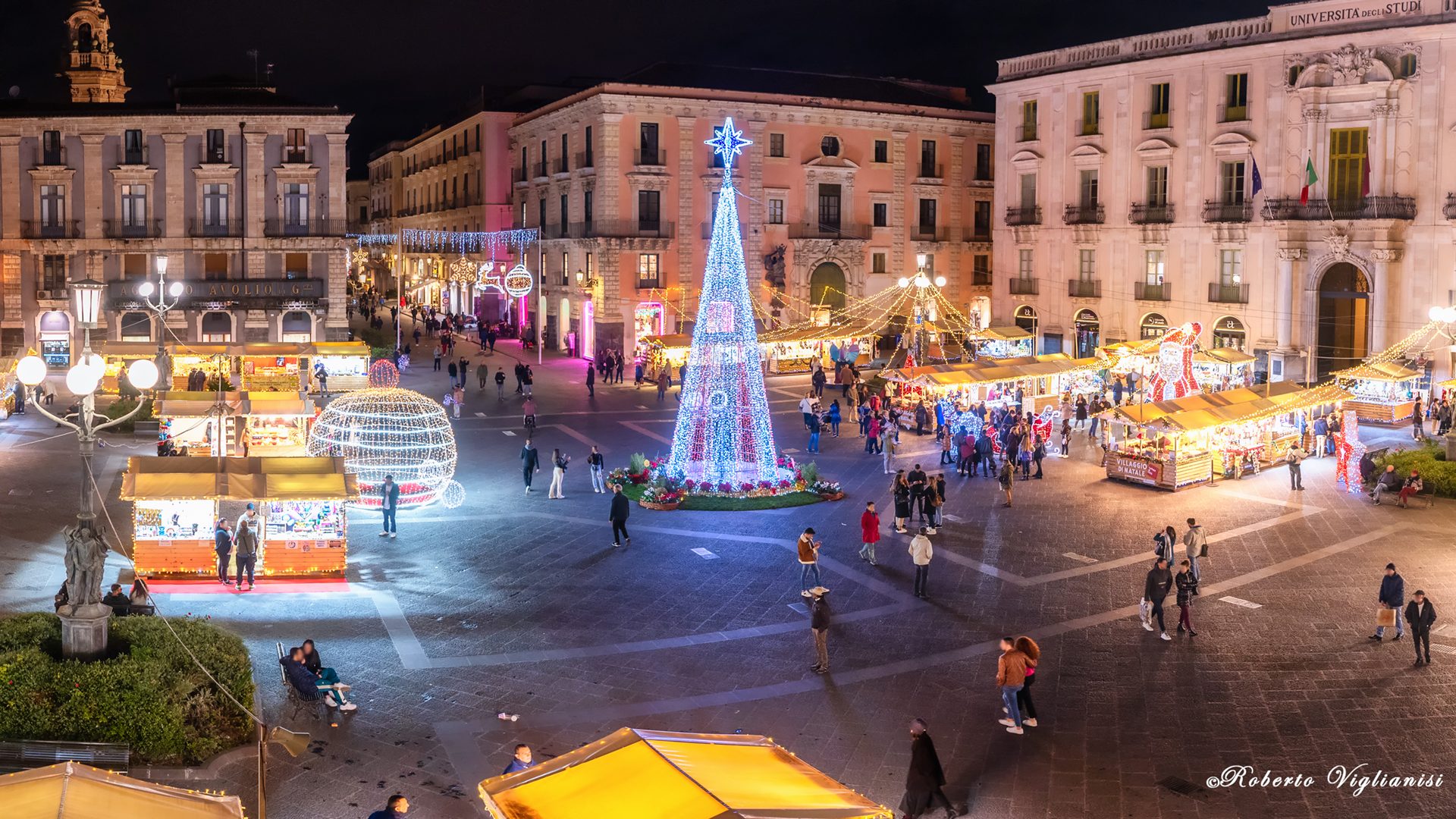 Torna la magia del Natale. Piazza Università, via Minoriti e via Montesano a Catania con un centinaio di casette in legno addobbate e illuminate, rallegrano questi giorni di festa con luci e colori tipici del periodo più atteso dell’anno.