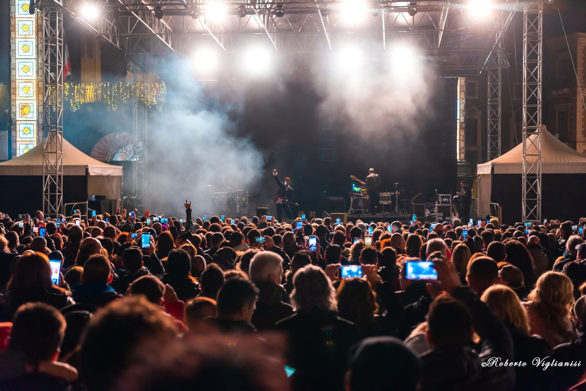 The Kolors, figli dello Show televisivo Amici di Maria De Filippi, vincitori dell’edizione 2015, hanno consacrato la loro bravura, raggiungendo in pochi anni traguardi importanti, diventando un gruppo di riferimento per i giovanissimi. Idoli dei teen agers con la loro performance catanese, vibrante di pop-rock hanno inondato di attrattività piazza Duomo, affollata anche dai fan più piccini in qualche caso accompagnati dai genitori, aspettando il fatidico Bis e alla fine del concerto un autografo.