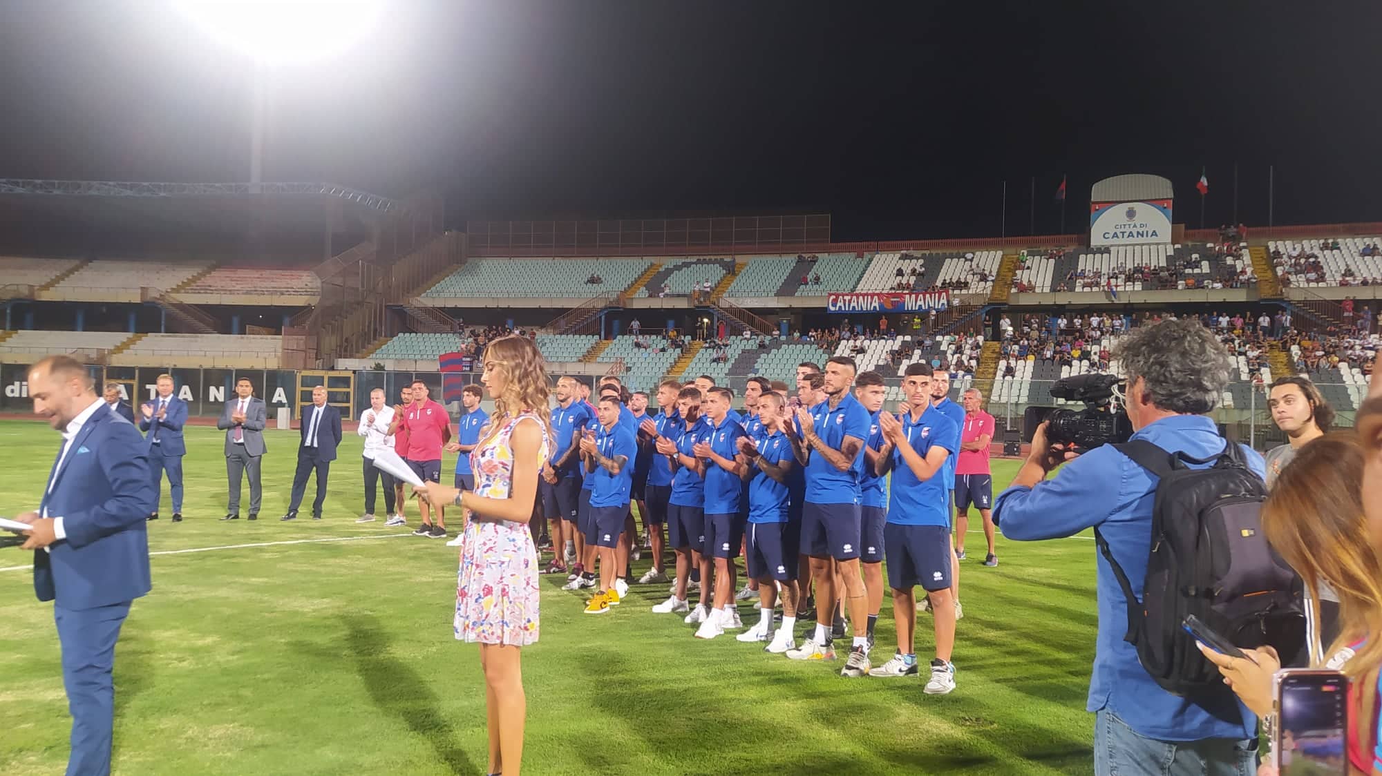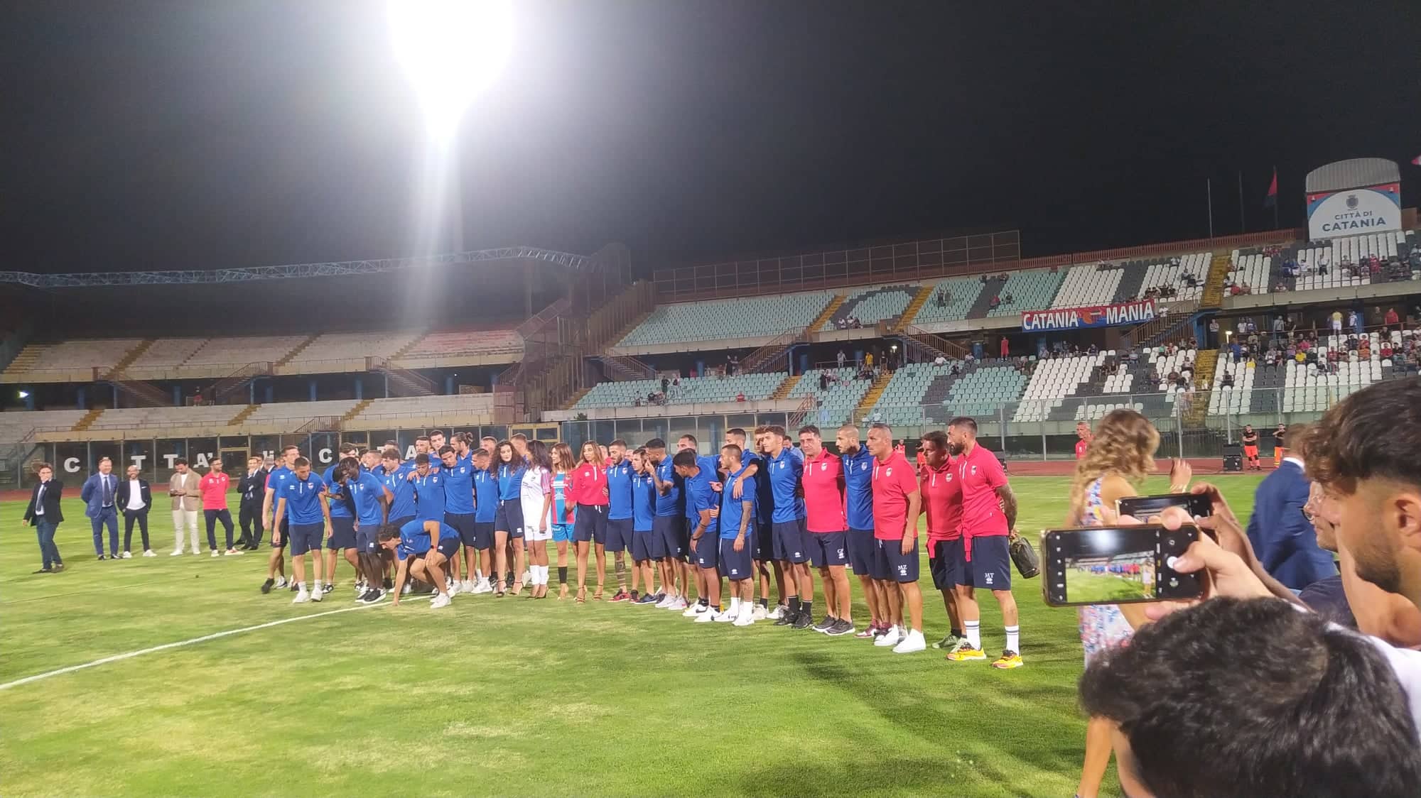 Una folla festante ha accolto ieri pomeriggio la squadra, la società e lo staff tecnico del Catania SSD, la nuova squadra che rappresenterà il capoluogo etneo nel girone I del campionato di Serie D 2002/23. L’evento ha visto la conduzione dal rettangolo verde del noto giornalista Gianluca Di Marzio e di Chiara Giuffrida, volto catanese di Helbiz Live.