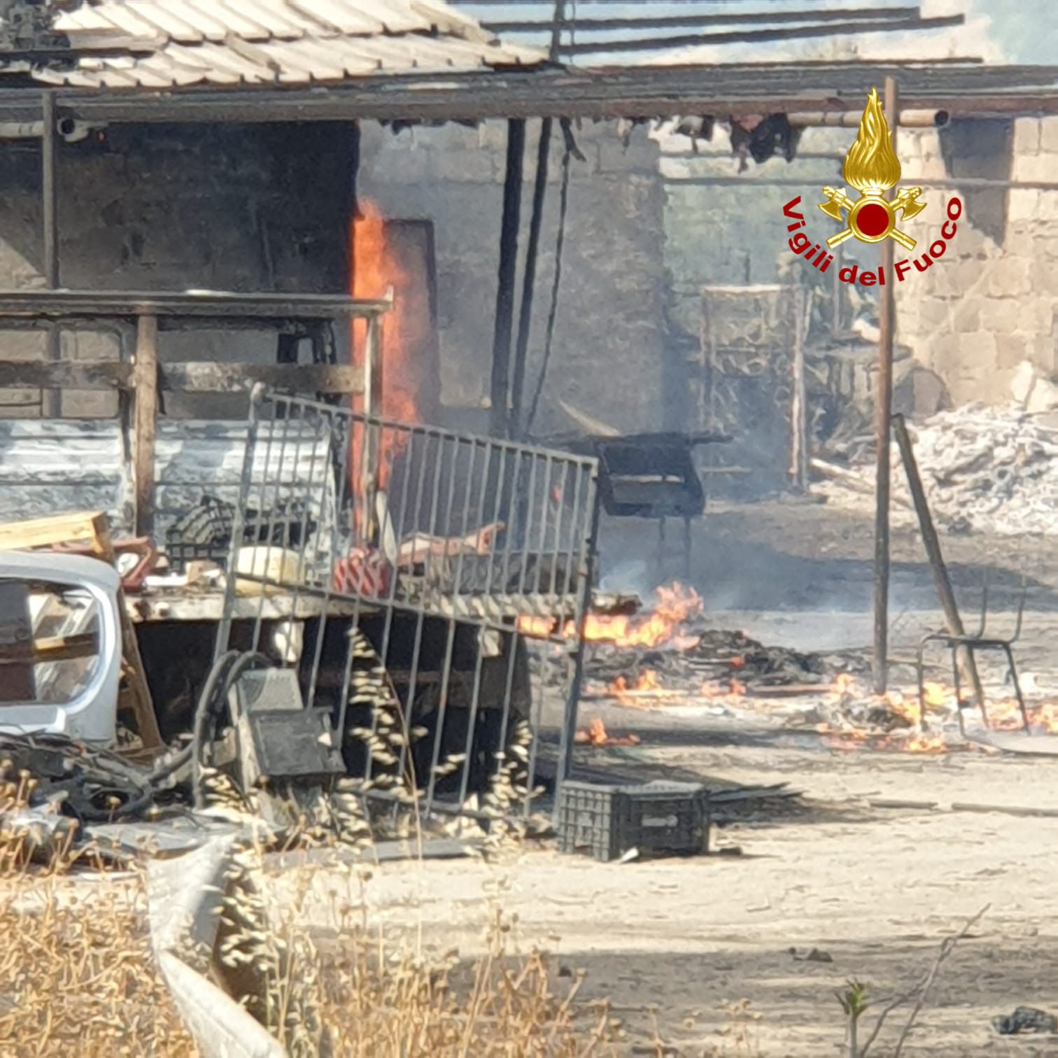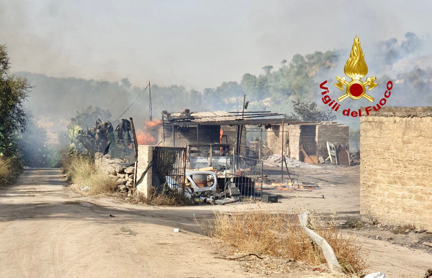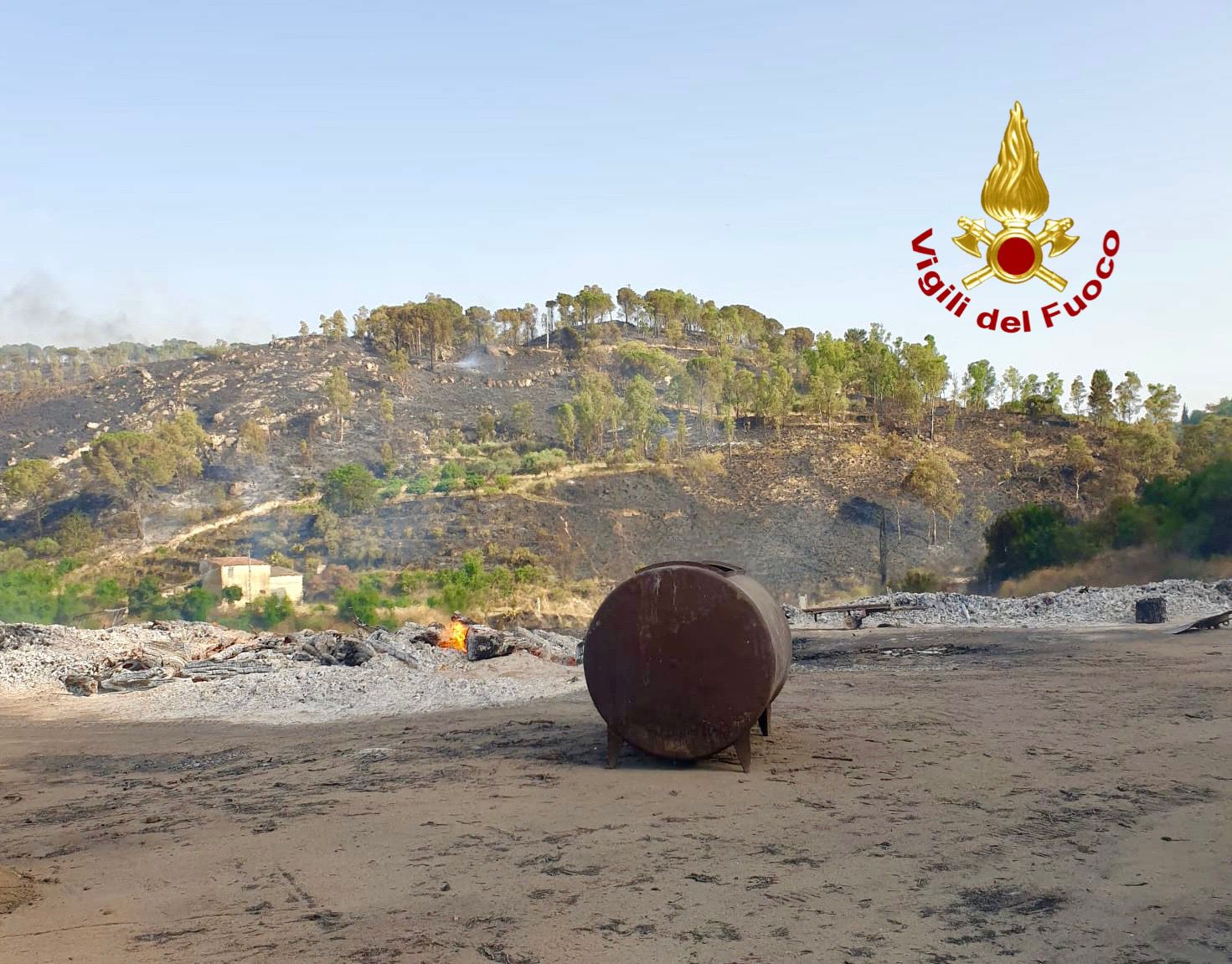 I Vigili del Fuoco del Distaccamento Volontari di Vizzini sono intervenuti a Grammichele per un vasto incendio di vegetazione e bosco in contrada Canale.