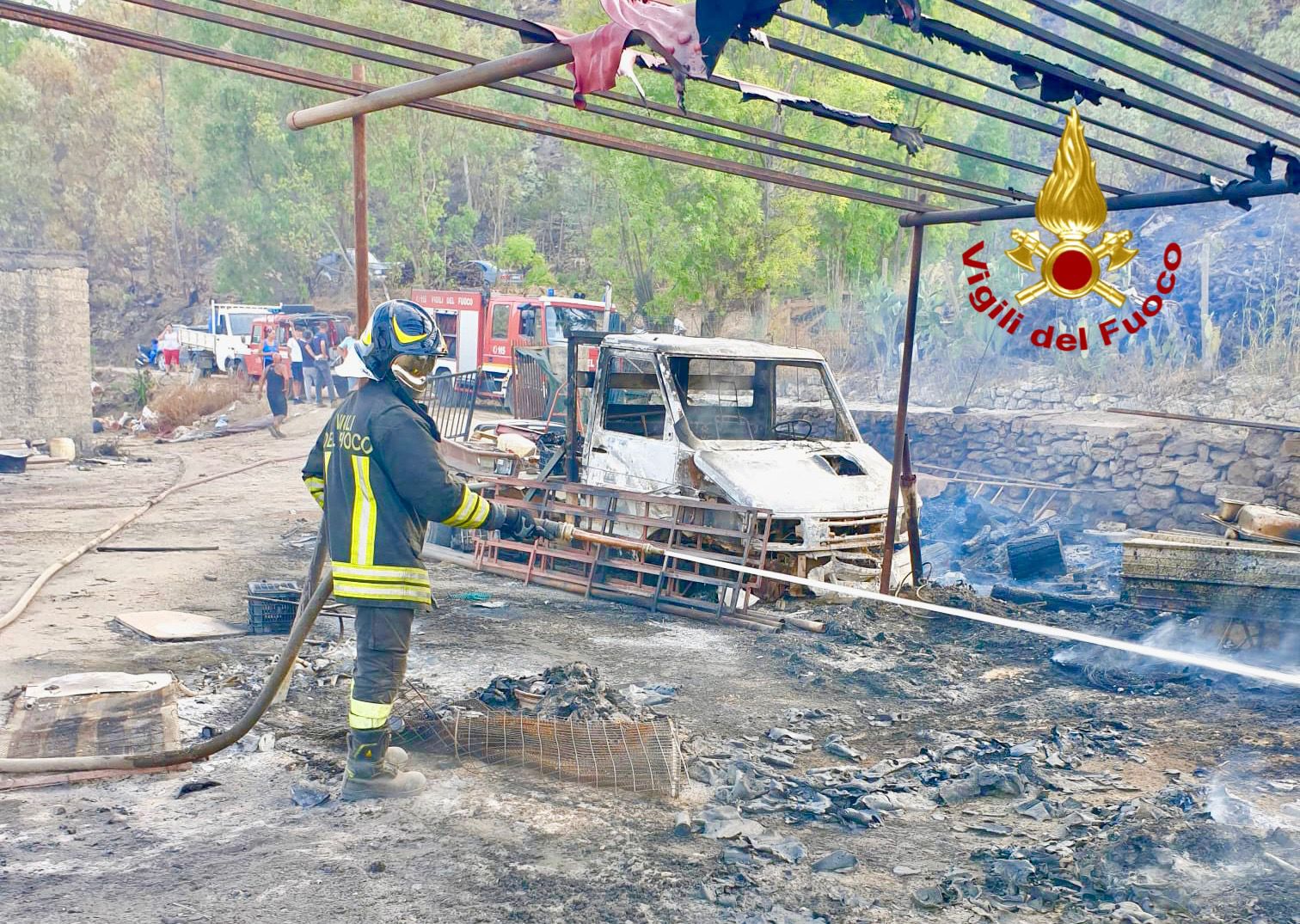 In via precauzionale è stata richiesta l’evacuazione delle abitazioni isolate in prossimità del fronte del fuoco, mentre a esplodere tra la vegetazione è stata una bottiglia di GPL. Alcuni mezzi che erano parcheggiati sono stati invasi dalle fiamme.