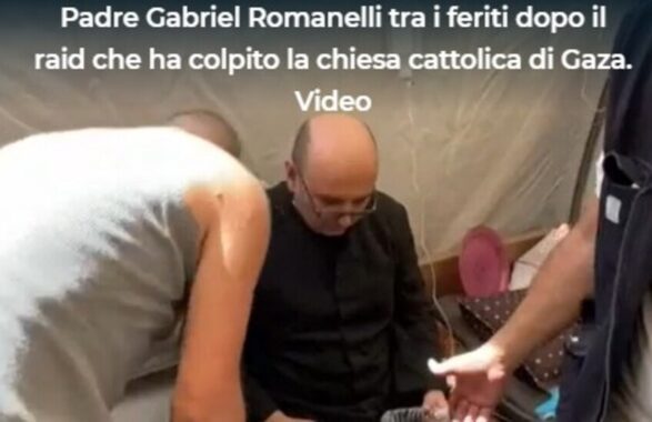 Gabriele Romanelli, il parroco che parlava ogni sera con papa Francesco, è ora tra i feriti di un conflitto che non risparmia neanche i luoghi di culto. Foto d’apertura: un frame da un video da RaiNews