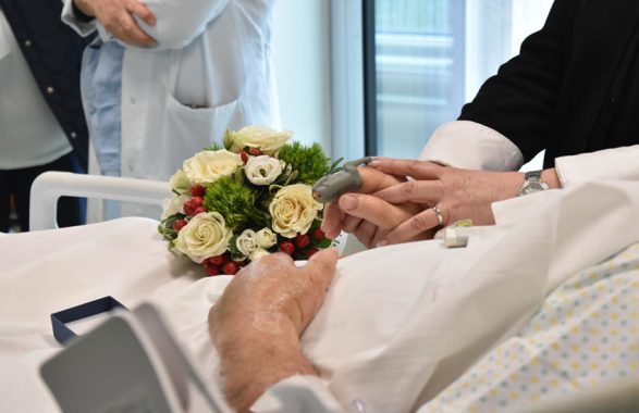 Maria Grazia Albertoni, 61 anni, e Vincenzo Lanzafame, 72, si sono sposati nel reparto di Rianimazione dell’ospedale San Martino di Genova. Insieme da 32 anni, avevano fissato il giorno delle nozze prima del ricovero di lui, ma a una settimana dalla data fatidica, Vincenzo, malato di tumore, ha avuto un malore ed è finito all’ospedale. “Abbiamo vissuto insieme 32 anni, sposarci non era una priorità: c’è tempo, ci dicevamo – ha detto la donna a Il Secolo XIX -. E proprio adesso che avevamo fissato la data e comprato le fedi, sembrava che sarebbe rimasto un sogno irrealizzabile. Invece…”. Invece si sono sposati: Vincenzo, intubato, ma lucido, ha fatto cenno di sì col capo.