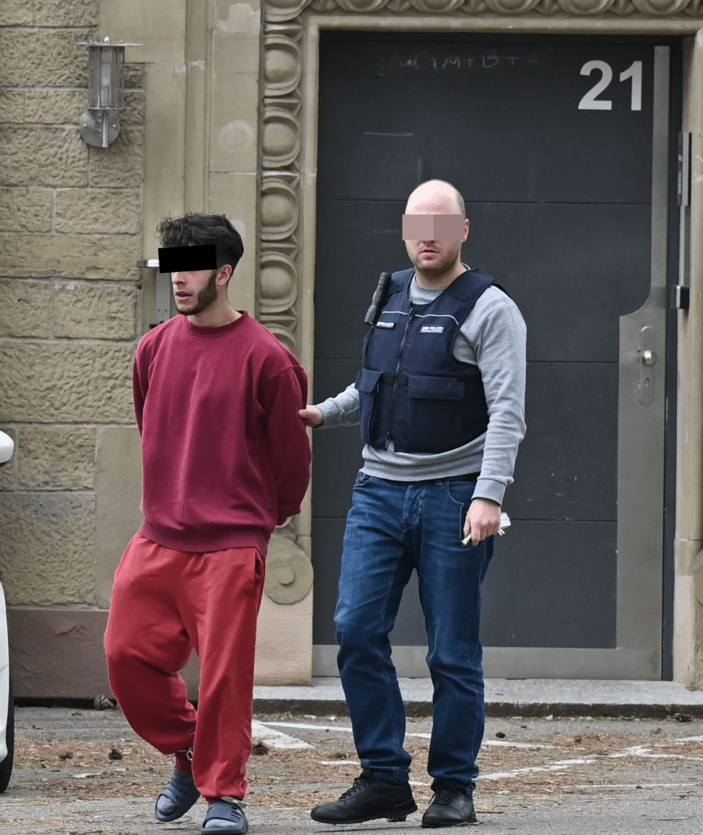 Il 19enne è stato immortalato in una foto pubblicata dal sito del quotidiano Bild: ha la barba senza baffi, felpa e pantaloni di tuta larghi, ammanettato dietro la schiena e accompagnato da un poliziotto.