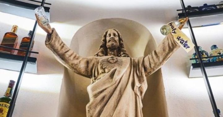 Le statue all’interno del locale sono state giudicate blasfeme. Tra queste c’è la statua di Gesù con una bottiglia in una mano e un bicchiere nell’altro e la statua della Madonna rivolta di spalle con un uovo sulla testa.