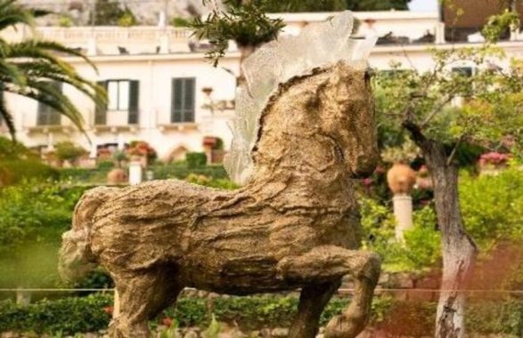 Gli artisti con la loro arte e immaginazione hanno realizzato opere straordinarie ispirate dai giardini del Grand Hotel Timeo e con un unico elemento in comune: la luce. Il primo è Nicola Evangelisti che, utilizzando la luce di wood e seguendo la via del minimalismo, trae ispirazione dalla Chiesa di San Giuseppe di Taormina, per realizzare ‘Il Tempio della Luce’. Nino Alfieri decide invece di combinare materiali ed elettronica per realizzare opere di ‘Archeo Sky’, dipingendo l’interno di due giare in terracotta disseminate in giardino. Giulio De Mitri, con oltre 40 anni di presenza nelle arti visive, ha sempre lavorato su progetti in grado di generare estremo coinvolgimento emotivo e spirituale nel fruitore. Non facendo eccezione nemmeno stavolta, con le sue 15 ‘Farfalle’. Fardy Maes realizza ‘Il Terrazzo dei cieli sfuggenti’, un grande specchio orizzontale che invita il visitatore a guardarsi riflesso nel cielo e ad ammirare la natura specchiata capovolta con la sola luce del giorno. Lo scultore Davide Dall’Osso con le sue opere lavorate in policarbonato riciclato dà vita a installazioni dai tratti fragili, delicati e leggeri ma allo stesso tempo possenti e in grado di confrontarsi con il vasto giardino del Timeo: ‘Le Teste’, i ‘Cavalli’ e le ‘Ballerine’
