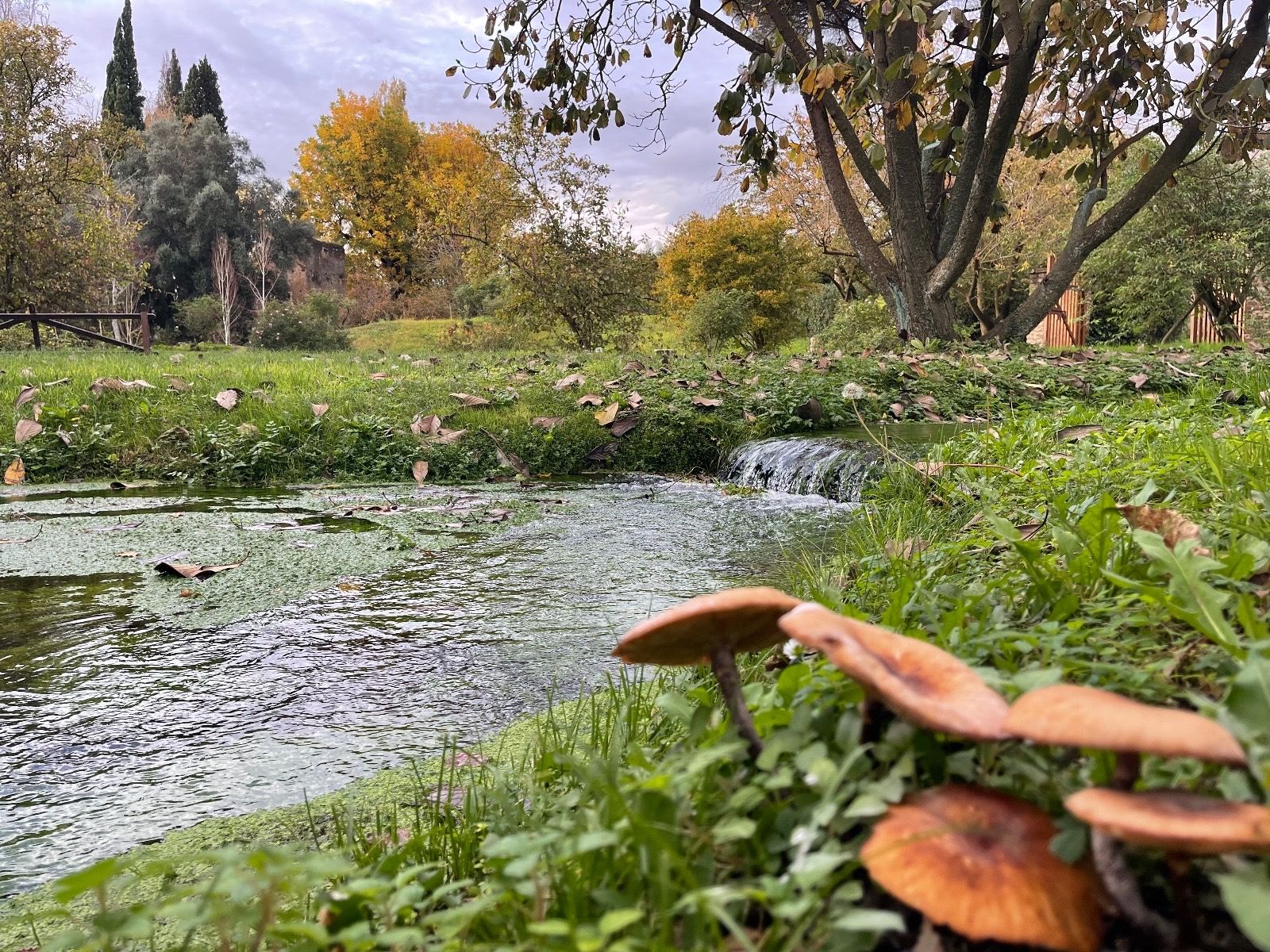 Se in primavera il Giardino di Ninfa è un’esplosione di colori, anche in inverno la natura emoziona, con le sue foglie a terra e dei riflessi e delle sfumature che davvero immergono nella magia di questa stagione.