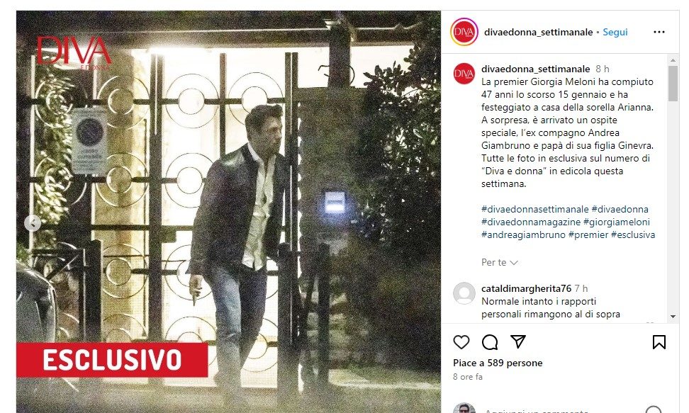 La premier Giorga Meloni e l’ex Andrea Giambruno sono stati pizzicati insieme dal settimanale Diva e Donna