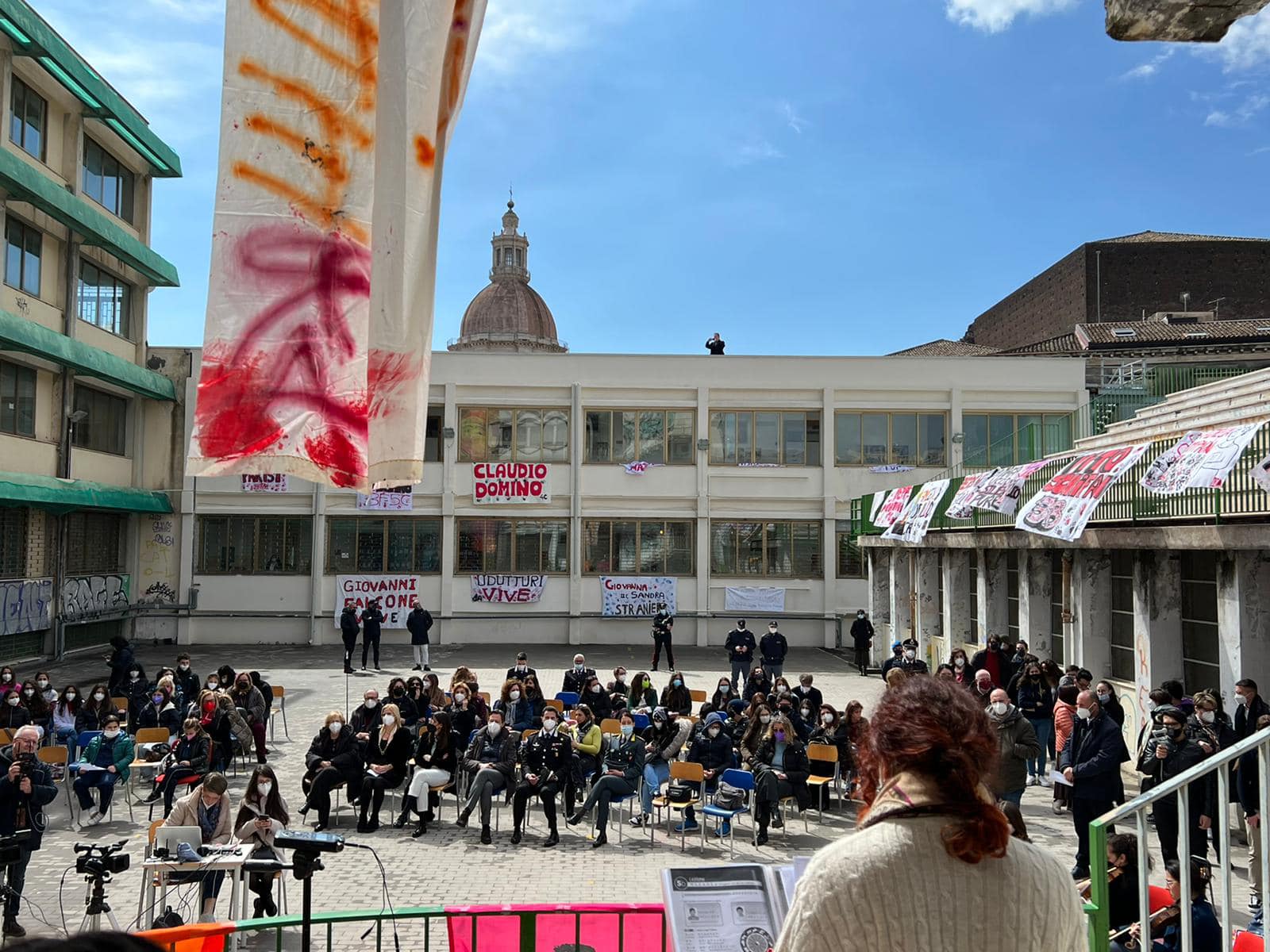 Una corale quanto sentita partecipazione di istituzioni e giovani studenti delle scuole cittadine ha caratterizzato a Catania gli appuntamenti del 21 marzo, Giornata nazionale della Memoria e dell’Impegno in ricordo delle vittime innocenti delle mafie, che l’amministrazione comunale con l’Assessorato alle Politiche Scolastiche retto da Barbara Mirabella ha organizzato con Libera Contro le Mafie. Due appuntamenti, promossi in due distinti siti cittadini, nell’ambito di una rete di sinergie finalizzate a diffondere la cultura della legalità: piazza Lanza e il Liceo Nicola Spedalieri. Le iniziative, sulle quali le scuole hanno lavorato nel corso dell’anno scolastico, sono state curate in sinergia con l’Ufficio Distrettuale Esecuzione penale esterna di Catania, la Casa Circondariale di piazza Lanza e decine di alunni di scuole cittadine.