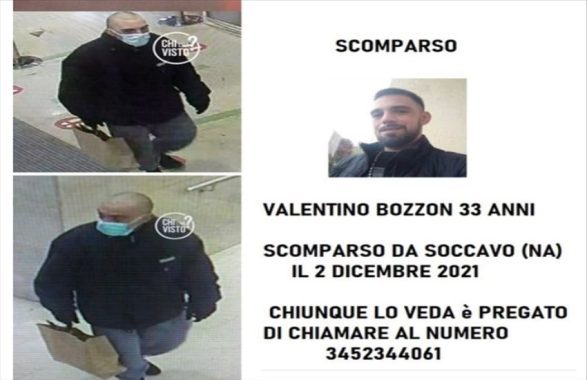 L’appello è stato lanciato dall’Organizzazione comunitaria “Scugnizzo Liberato” sui social: “Attenzione questo ragazzo nelle foto è Valentino Bozzon, un giovane che conosciamo, la famiglia non lo riesce a contattare da una settimana, l’ultima volta che è stato visto indossava una tuta, aveva con sé i documenti e pochi soldi.