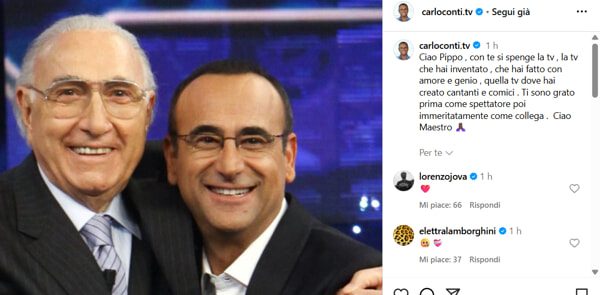 Particolarmente toccante il ricordo di Carlo Conti, che lo ha sempre considerato un punto di riferimento: “Da ragazzo mi chiamavano ‘Pippuzzo’ e quando dicevano che ‘baudeggiavo’ era come per un calciatore essere paragonato a Maradona. Con la morte di ‘Superpippo’ se ne va un pezzo di storia, ma resta tutto quello che ci ha insegnato”.