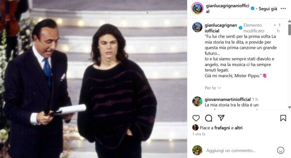 Commosso anche il saluto di Gianluca Grignani: “Fu lui che ascoltò per la prima volta La mia storia tra le dita e ne previde il successo. Io e lui siamo sempre stati diavolo e angelo, ma la musica ci ha tenuti uniti. Già mi manchi, Mister Pippo”.