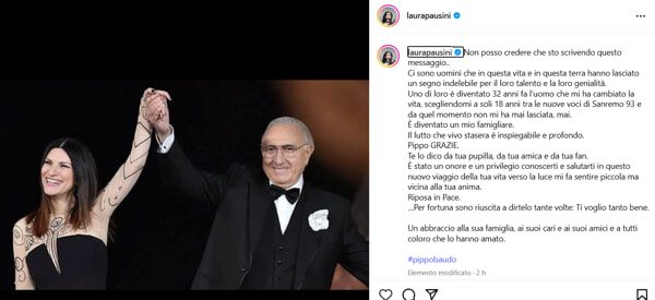 Laura Pausini, tra i talenti da lui lanciati, ha scritto: “Ciao al mio secondo papà. Pippo è l’uomo che a soli 18 anni mi cambiò la vita, scegliendomi a Sanremo ’93. Da allora non mi ha mai lasciata. È diventato famiglia”.