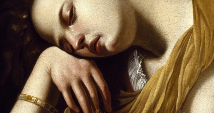 Nella Giuditta che decapita Oloferne, che ritrae l’episodio in cui Giuditta, l’eroina biblica, assieme ad una sua ancella, si reca nel campo nemico; qui circuisce e poi decapita Oloferne, il feroce generale nemico. Opera di grande violenza, e c’è chi legge il desiderio di vendetta dell’autrice contro il suo stupratore.
