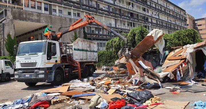 In poco più di due ore stamattina è stato liberato, senza alcuna necessità di ricorrere ad azioni di forza, il terreno privato attiguo a piazza della Repubblica, angolo con piazza Grenoble e via Teocrito, dove fino a un mese fa, con tende e materiale di risulta, oltre una ventina di migranti stazionavano, anche di notte, in gravissime condizioni igienico sanitarie.
