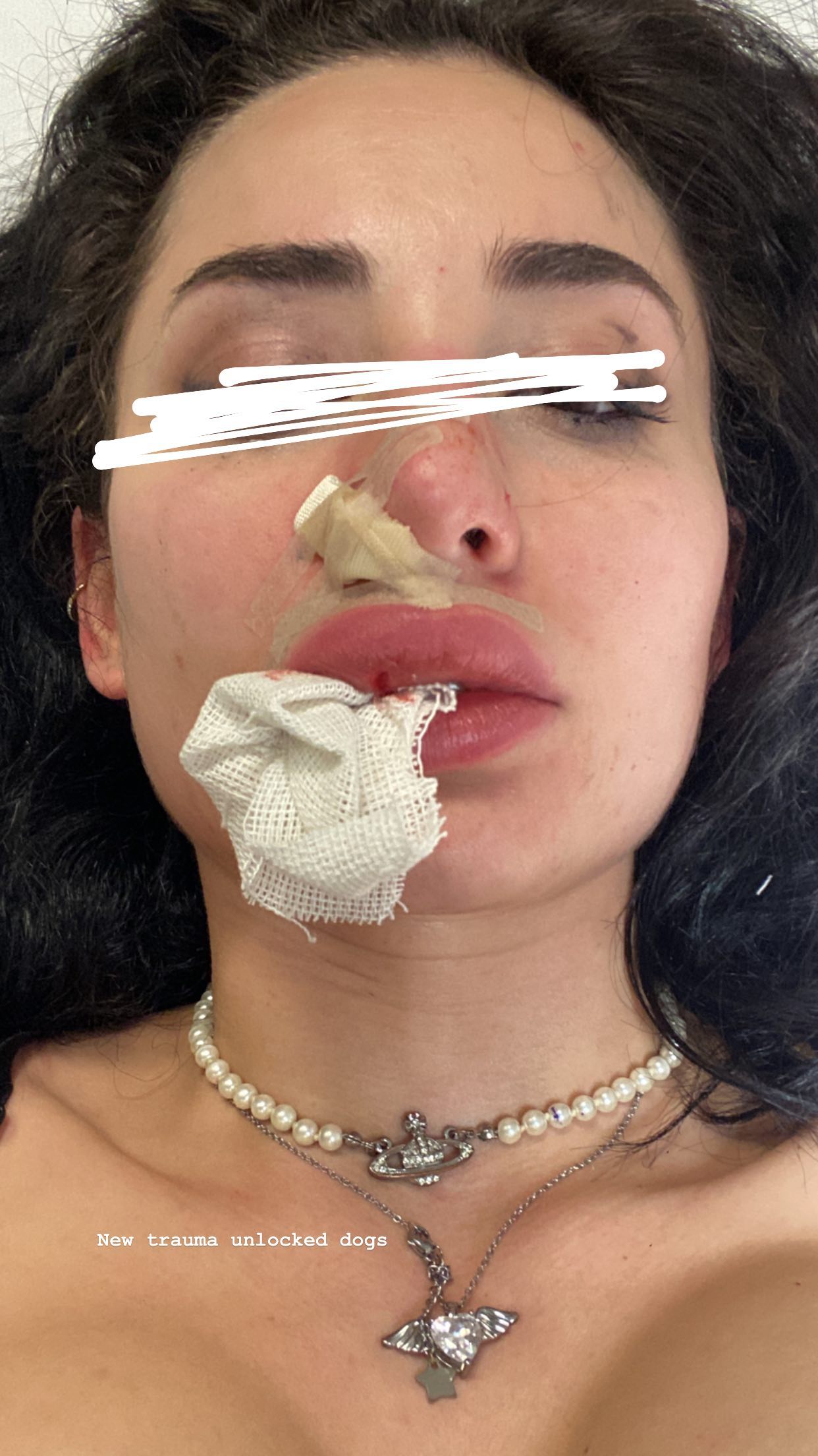 Sul social Menchi ha pubblicato delle immagini del viso tumefatto e coperto da bende, mentre all’ospedale Sant’Eugenio era in attesa di capire da un chirurgo plastico il da farsi.