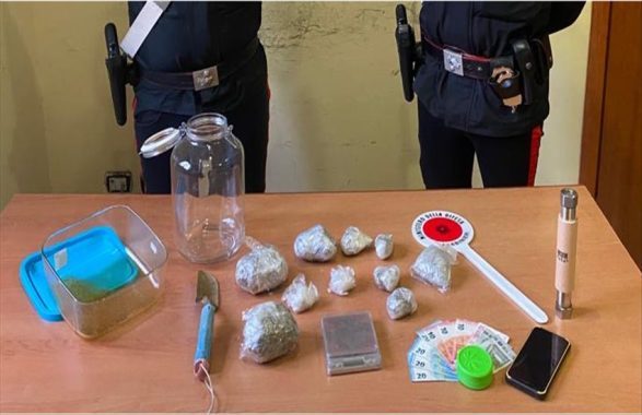 Il giovane era agitato e quando i militari gli hanno chiesto spiegazioni ha ammesso di tenere in casa due spinelli di marijuana. Nella sua camera da letto, però, i militari non hanno trovato spinelli ma 8 involucri di “erba” per un totale di 215 grammi, 2 stecchette di hashish, 1 bilancino di precisione e materiale vario per il confezionamento delle dosi.