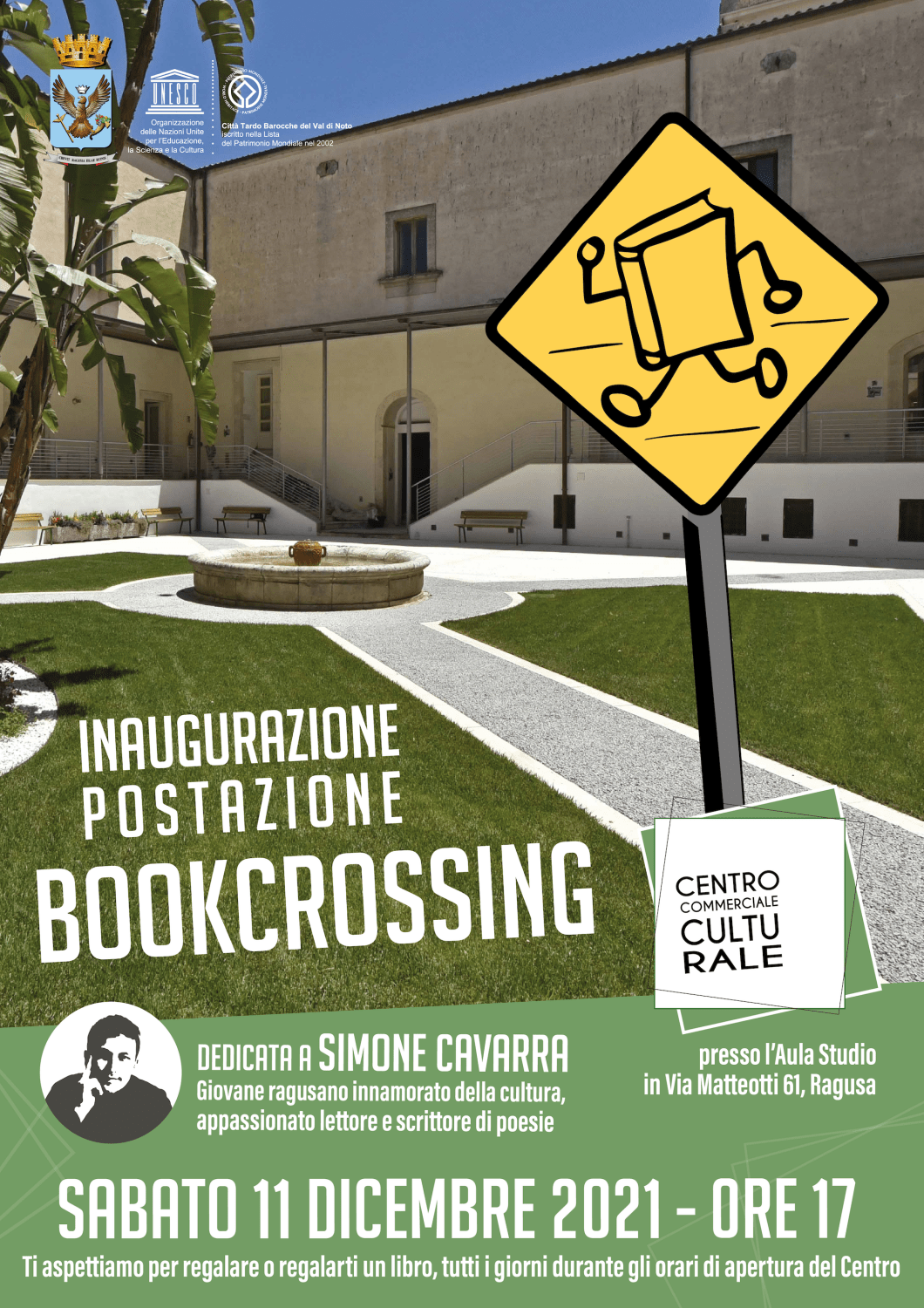 L’iniziativa verrà inaugurata come detto sabato 11 dicembre alle 17 alla presenza anche del Sindaco Peppe Cassì, dei genitori di Simone Cavarra e di tutti coloro che, al momento, vorranno essere presenti ed arricchire la postazione con i primi libri: sarà possibile usufruire di questo servizio in qualsiasi momento, durante gli orari di apertura del Centro.