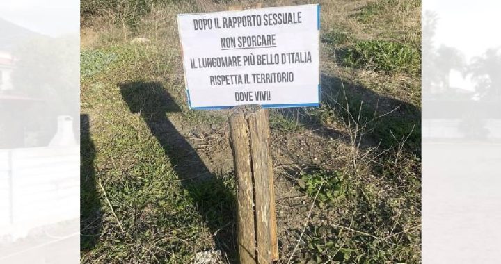 Un messaggio a metà tra il simpatico ed il severo: un rimprovero che, forse, vuole far ridere, ma anche riflettere. Non è chiaro chi abbia voluto affiggere questo cartello sul lungomare di Latina, fatto sta che il messaggio che contiene è davvero preciso ed ha bisogno i pochi commenti. Il luogo, evidentemente, è frequentato da coppiette che spesso, per fortuna non sempre, non lo lasciano pulito come lo hanno trovato. Ci sta, quindi, che qualcuno voglia ricordare che l’amore è sacro, anche quello fisico, ma che tenere pulito l’ambiente nel quale tutti viviamo è altrettanto importante.