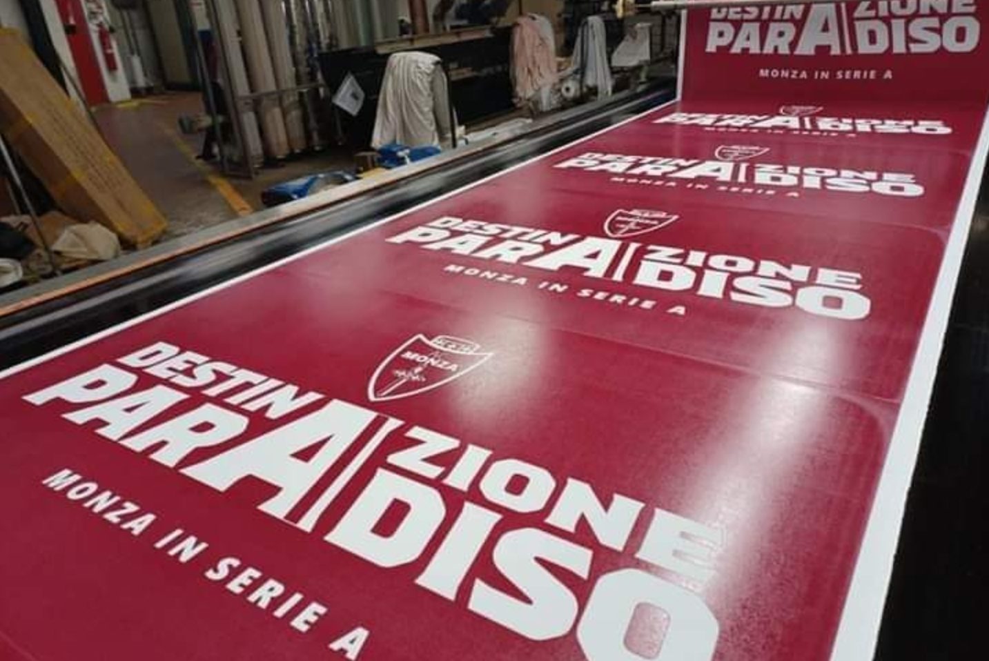 La foto che circola sul web sarebbe stata scattata nella tipografia a cui il Monza aveva affidato la stampa dei cartelloni per la festa eventuale di Serie A. Una foto che però ha creato l’ilarità dei tifosi avversari. Di seguito la foto presa da Facebook.