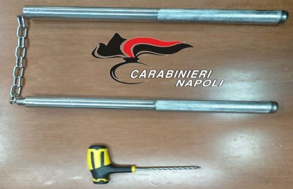 I carabinieri li bloccano e li denunciano. Sono due minorenni di Ponticelli, di 15 e 17 anni, accusati di resistenza a pubblico ufficiale e porto di armi ed oggetti atti ad offendere.
