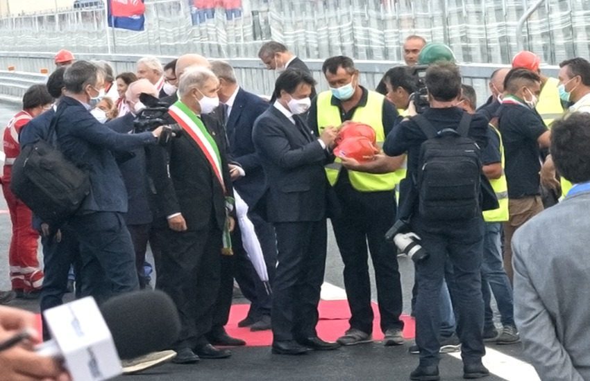 Oltre a Conte sono arrivati anche la presidente del Senato Maria Elisabetta Casellati e il presidente della Camera Roberto Fico. Presenti anche diversi ministri e l’architetto e senatore a vita Renzo Piano, ideatore del nuovo ponte.