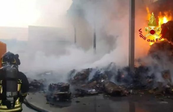 L’incendio è scoppiato ieri, nel pomeriggio, all’interno di una capannone contenente ecoballe di rifiuti per la lavorazione della differenziata. Pallet, plastica e carta sono i materiali stoccati nel capannone e dopo che le fiamme si sono propagate sono intervenute tre squadre dei vigili del fuoco che hanno avuto un bel po’ da fare per domare l’incendio.