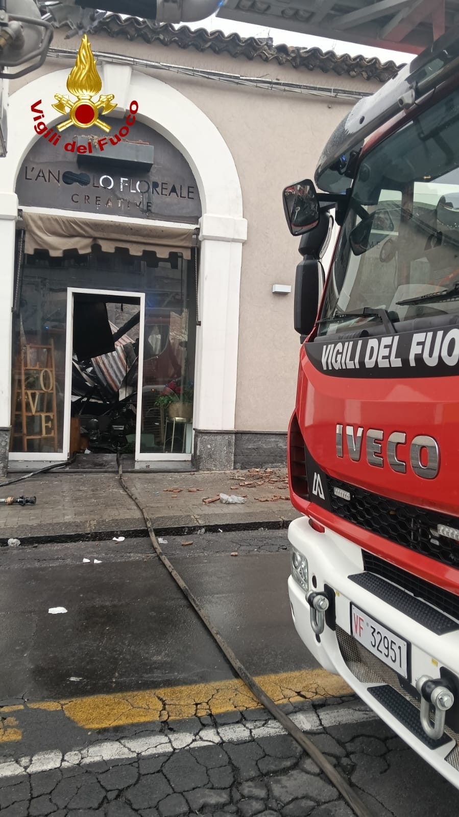 Un incendio divampa in una rivendita di fiori e oggettistica