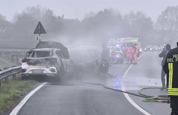 Lo scontro e l’auto in fiamme