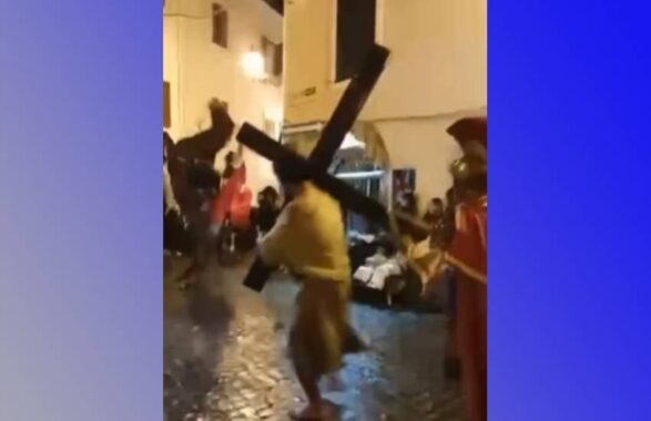 L’incidente è avvenuto in serata, quando la processione, con i suoi costumi tradizionali e la sacralità dell’evento, stava procedendo lungo il percorso stabilito. Il cavallo, per motivi ancora da chiarire, ha sollevato le zampe anteriori e ha scivolato sulla strada bagnata, finendo per rovinare al suolo. Il panico si è diffuso tra gli spettatori, soprattutto perché nella caduta l’animale ha travolto alcune persone. Si sono vissuti momenti di grande tensione, ma fortunatamente l’animale è riuscito a rialzarsi e a proseguire il cammino senza danni evidenti.
