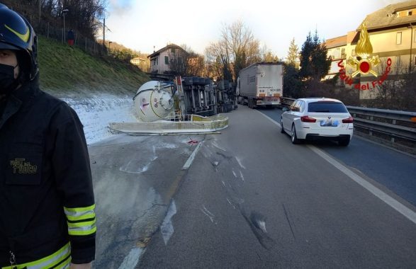 Questa mattina, i Vigili del fuoco di Busalla – Genova – sono intervenuti sull’autostrada A7, in direzione Genova, per un autoarticolato ribaltatosi.