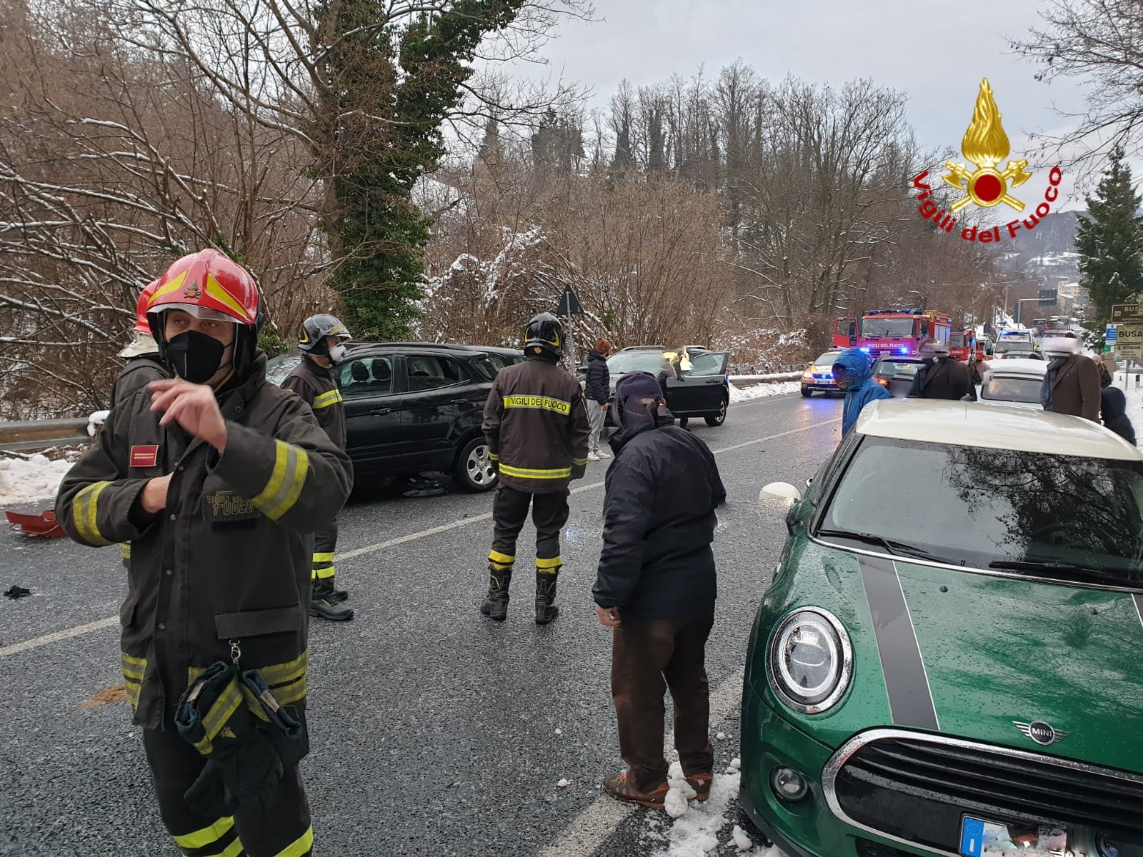 A causa del ghiaccio sette vetture si sono scontrate fra di loro.