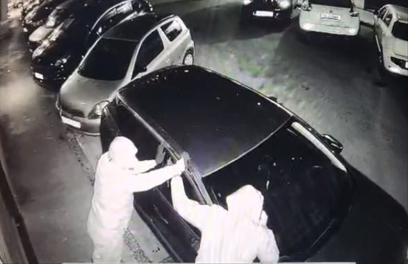 Il video riprende l’intera scena del furto. In 3 si avvicinano furtivi all’auto, coperti dalle mascherine, ed iniziano ad armeggiare con un cacciavite ed un piede di porco sulla portiera, per poi aprirla in un paio di minuti.