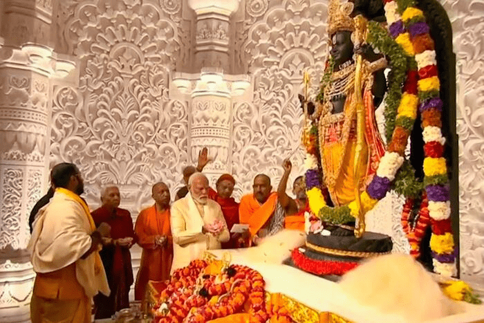 Il premier indiano Narendra Modi ha consacrato il tempio di Ayodhya dedicato al dio indù Ram, costruito nel luogo in cui, nel 1992, una folla di fanatici induisti distrusse la preesistente moschea.