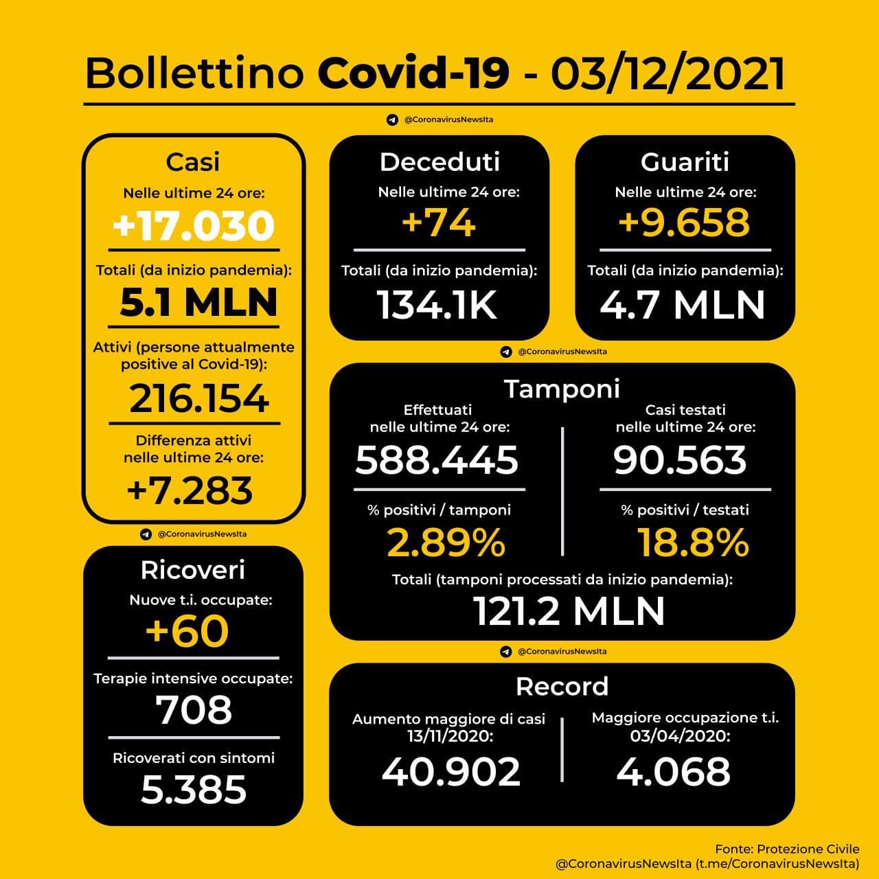 Ecco i numeri di oggi in ITALIA. Qui il riepilogo generale.