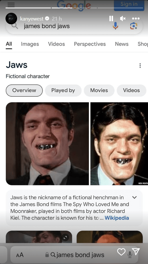 Proprio conoscendo Kanye (o Ye come si fa chiamare ora) e il suo gusto per la provocazione, resta da capire se quella mostrata sia una protesi applicata sui denti o un impianto vero e proprio al posto dei suoi denti veri. A prima vista, a dispetto da quanto fatto intendere, sembrerebbe più verosimile la prima ipotesi.