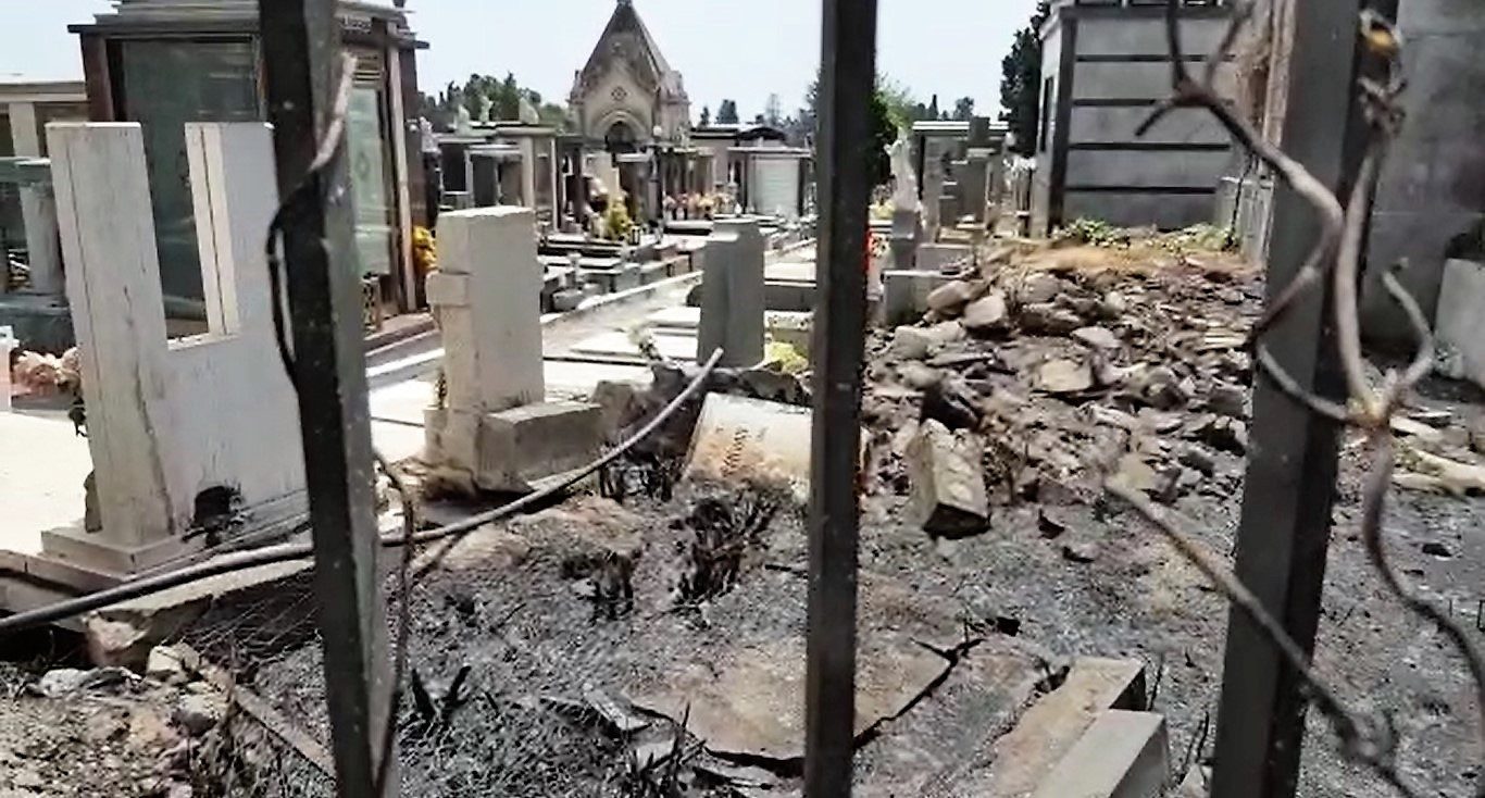 Anche il cimitero è stato seriamente minacciato. Le fiamme sono riuscite a raggiungere alcune tombe, aggiungendo un vistoso sfregio al vergognoso degrado.